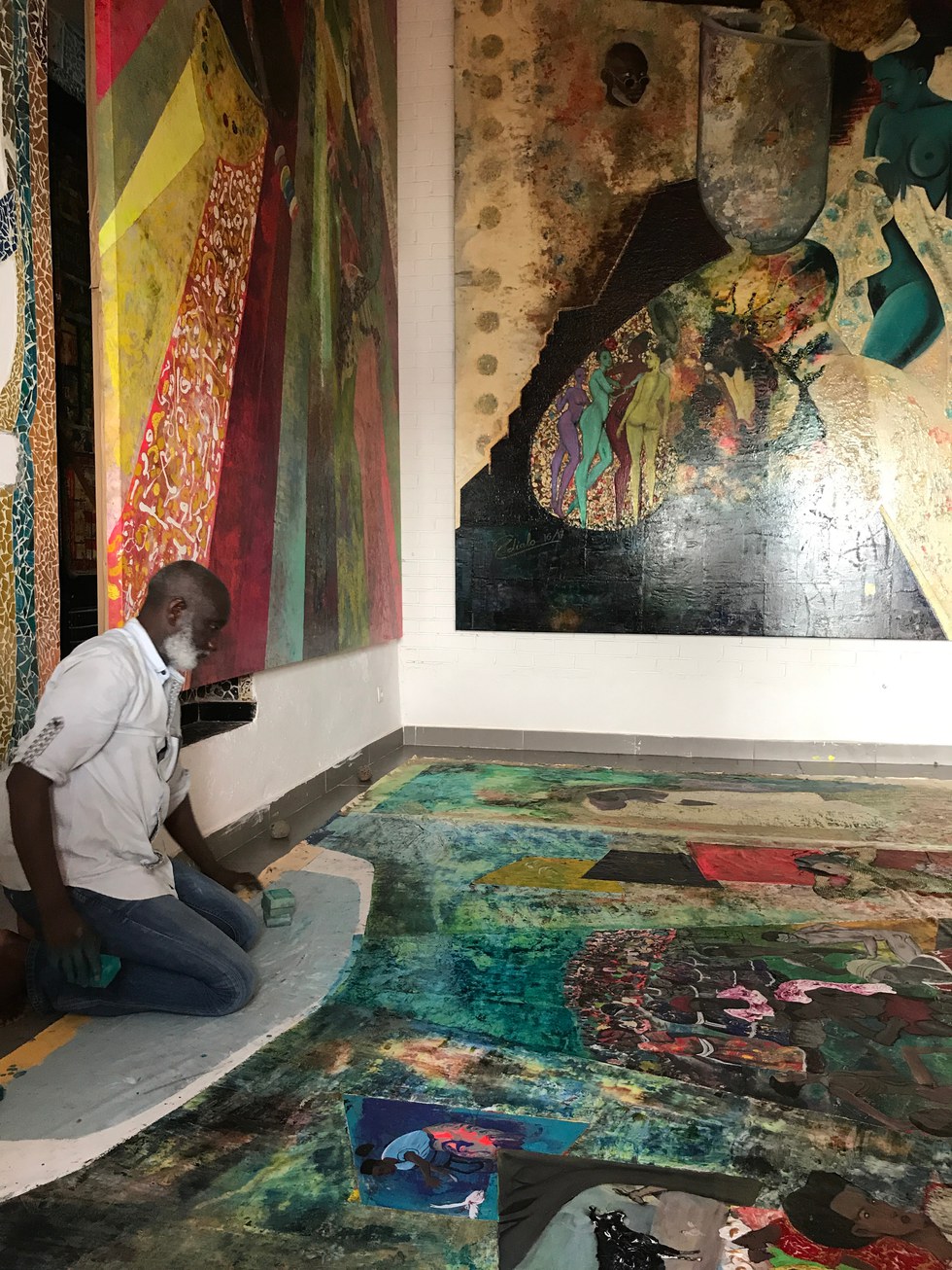 Artist Abdoulay Diallo at his studio in Ngor Island.