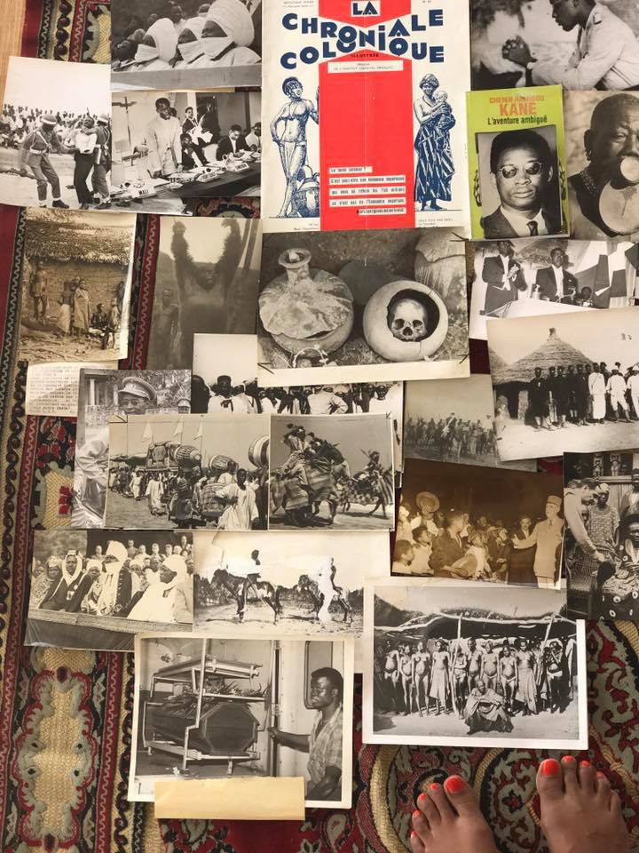 A collage of archived photographs from the French colonization era in Cameroon, Mali and Congo.