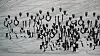 This photograph [I found] in Namibia when I was doing research in the archives of a Herero family or village. It’s about nine people who are standing, looking at the camera. And they’re looking so desperate, so worn out; even their ribs are showing. It’s an image that’s going to be there forever. This was a time when the Herero people’s space was under siege. So I take this image and I take off the bodies; the body for me in those images is what records time and the location. So I take off the location, I take off the time, and I take off the body and leave the heads and the limbs, but take off the body as though they’ll be dressed in white, kind of making them angels. And then I repeat this picture, because when I look at Namibia now, the Hereros are still there. No matter what happened to them in history. So to bring about that resilience that they’ve had as a people, to be there even if they’ve gone through the hard times, I then repeat that motif. It becomes my motif that I’m using in the screen print. And I print it over and over again, making them feel like they’re there and they’re commanding enough space. And I call this one ‘Seuswa,’ ‘like grass,’ they will always be there. You know you can bend down grass, and it grows out even much greener.”