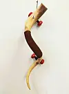 Placing these objects in urban contexts and fusing them with contemporary objects such as skateboards, Hwati considers the role of indigenous beliefs in today’s Zimbabwe.