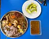 The Lusaniya majestically arrives on a metal platter. Instead of using a table we place it on a white plastic garden seat and delve into it with our hands. Between huge mouthfuls of pilau rice that has been cooked with onion, garlic, ginger and cloves I ask Rattigan about his faith. “I am a Muslim and a Christian," he says. "My parents are Christian but they let me decide.”