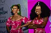 Top 10 contestants, Anita Dike, Blessing Nwoye, and Olabimpe Ogunyemi, walk the runway as pageant judges look on.