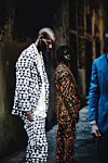 “Italy is not as integrated as the US,” says Oyéjidé. “People are not used to seeing a group of African guys in the city wearing suits.” More often, he says, African men are seen as peddlers selling bags and trinkets on the corner. Instead, the crowd wanted to know “who the celebrities were in their fly clothes.”