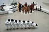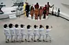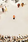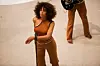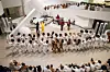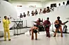 The singer had asked audiences to dress in all-white, which most concertgoers did in style. While the audiences matched the color of the museum walls, Solange and her backup singers were dressed in a brown-orange outfits, with the rest of the band in other strong colors—yellow, dark blue, red.