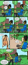 Although JAND’s glimpse at Nigeria’s bourgeois is seen through the experiences of young adults studying abroad and is relegated to lighthearted accounts of one-night stands, secret relationships, and warring couples, there is the occasional strip, which delves slightly deeper, but not without the pretext of comedic relief. One particular strip aptly titled Malaria, features a character named Temi fielding questions from curious classmates about her numerous bouts with the disease. In the comic, Aderinokun notes that a personal encounter inspired the scene.
