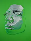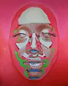 The paintings start with a mold of the model’s face. My wife usually assists in applying the mold and plaster strips. I make a cast plaster sculpture from the mold. Then I sculpt the eyes and parts of the nose based on several photographs of the model. I make another cast in resin that is later covered in chrome. Adding the artificial eyelashes helps convey a feeling of glamour and exaggerated emotion.