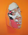 Omolade’s background as a graffiti artist and comic book cartoonist (he interned at Marvel at one point) finds its way into his hyper-realistic, vibrant oil paint renderings of luminous masks, although perhaps not immediately apparent on the surface. Omolade's use of metallic surfaces pay homage to the comic books that filled his youth, and his selection of bold, colorful backdrops serve as a nod to his graffiti-tagging heyday.