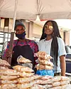 Iya Bimbo, who sells nuts and chips one street, and Seyi Shay.