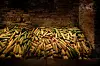 Ibrahim Mahama. A Straight Line Through the Carcass of History1649( 2016–19) Smoked fish mesh, wood, cloth, and archival materials. Courtesy of the artist and White Cube.Photo by David Levene