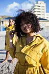 The fashion film, Spring in Mzansi, brings these vivid portraits to life. You can hear Kgasane’s ethereal voice summoning the motion of spring, overlaid with the endless beauty of the Atlantic Ocean. Kgasane makes a point to accentuate the infinite possibilities of black womyn’s beauty.