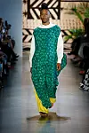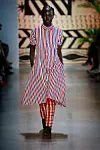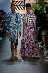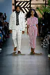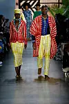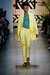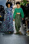 "For Spring we introduced new silhouettes such as a double-breasted suit for women, a ruffle tiered dress, a long flowing shirt dress, an off the shoulder caftan and a fringe wrap skirt." The design came in a range of vibrant pastels, with palm prints, reflecting the breezy atmosphere in which the line is produced. "The color palette is reflective of colors found in the American and Ghanaian flag as well as colors we see in nature," the duo added. "The indigo derives from the indigofera plant made using a traditional technique of natural indigo to woven cotton. We introduce pastel colors such as lilac and pink."