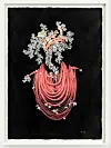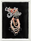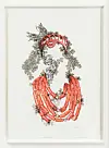 Ms Idahor's primary media for her new works are photo paper collages with pen drawings in coloured pencil, which depict dressed corals beads worn as worn by individuals against clear white and black paper, as though suspended in a clear cloud. The composition gives her work an ethereal beauty. To create them, she made prints on bond paper using an inkjet printer, which she then glued to soft tracing paper. In the artist's own words, her decision to leave out life images was to "kind of speak of a presence that should exist within the beads." In their place weaves, resembling tassels of newspapers stripped and knotted together, hang down.