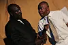 Scene from the stage play "Super Patriots and Morons" at Theatre in the Park. Actors: Obrian Mudyiwenyama as Bazooka (left) and Daves Guzha as His Excellency (right)