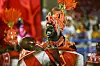 To bring the theme to life during the parade, creative director Alex da Souza created floats and costumes that represented some of the most powerful black women in Africa and Brazil. In one of the floats, about the queens of North Africa, a large sculpture represented the fertility goddess, Isis, nursing her son, Horus. He represented the opulence of Egypt in another float, which brought to life Kemet, the black land of Egypt. Black women who were warriors in history in the struggle against Portuguese imperialism were represented in another float, 'The eternal struggle'. The parade ended with a homage to the common woman, a float carried a black woman with her son in her arms, symbolizing the suffering of mothers who lost their children in urban violence. The Baianas are usually older women and are always represented in the Carnival school parade. They were dressed as the first mothers who crossed the African savanna millions of years ago, creating the entire human race. The Queen of the drum section wore a costume called Hatshepsut, a queen in the 18th Egyptian dynasty.