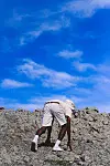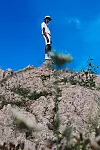 "In Spanish, paz means 'peace,'" Esomeju says. "Paz was inspired to portray a peace of mind in the African man. Using cool colors juxtaposed with the landscape, I was able to create a story in which someone is searching for peace and eventually finds it."