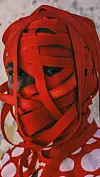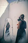 This cycle is reflected in the photos. In most of them, the color red is prevalent, symbolic for love. And the main subject, which is the photographer herself, is elusive, hiding her face either with a mask or red ropes, which could symbolize the blinding effect of love and how it can suffocate you.