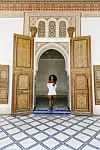 "Enjoying a casual walk through Bahia Palace in Marrakech."