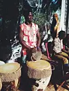 "Skin aprons are usually beaten at wedding feasts by Kiga women and girls."