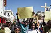 A protester gestures while she holds a cross. Photo: Zinyange Auntony
