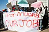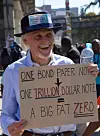One of the protesters could be heard shouting “Just close this fucken’ country” as he tore the worthless bearers’ cheques into pieces while another carried a placard written “Dog.”